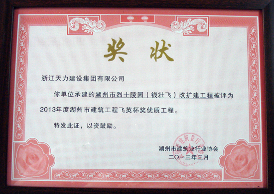 湖州市烈士陵園(錢壯飛)改擴建被評為2013年度飛英杯
