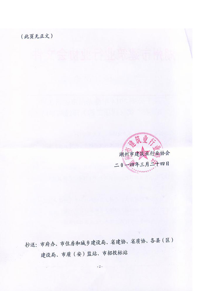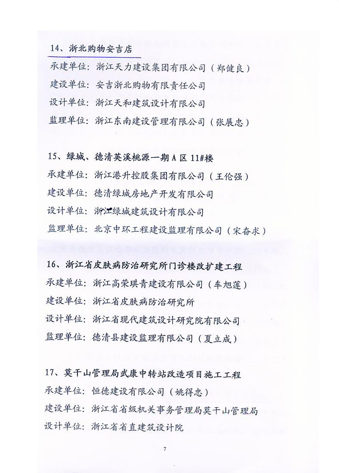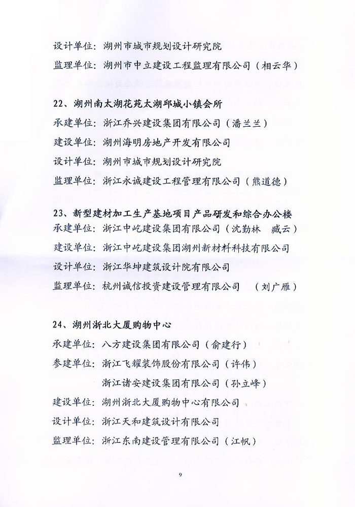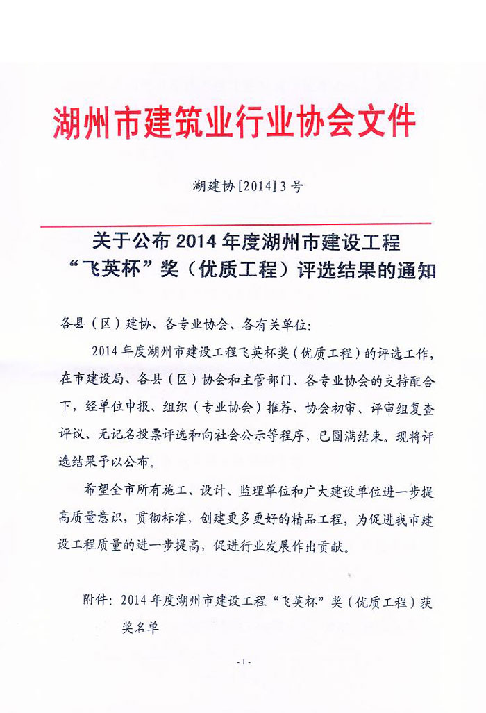 2014年度湖州市建設工程“飛英杯”