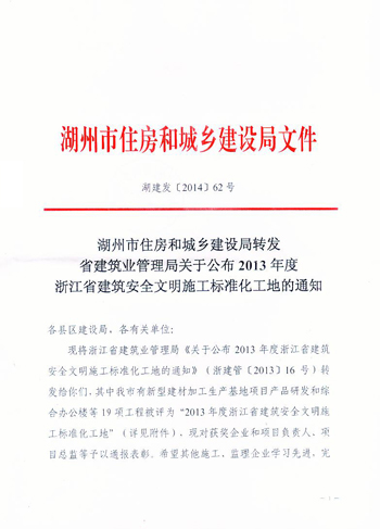 2013年度浙江省建筑安全文明施工標準化工地