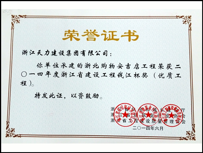 2014年度浙江省建設(shè)工程錢江杯獎(jiǎng)(優(yōu)質(zhì)工程)