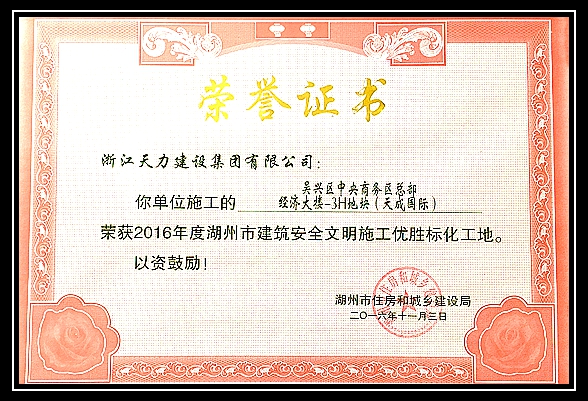 2016年度湖州市建筑安全文明施工優勝標化工地