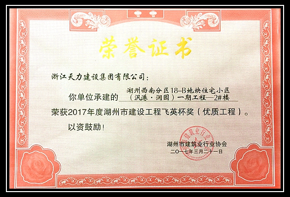 2017年度湖州市建設工程“飛英杯”獎優質工程