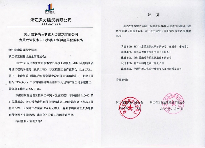 美欣達(dá)技術(shù)中心大樓2007年度浙江省錢江杯