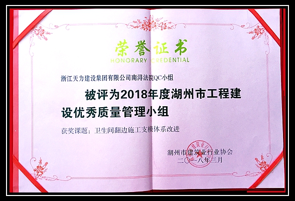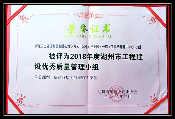 2018年度湖州市工程建設優(yōu)秀質量管理小組