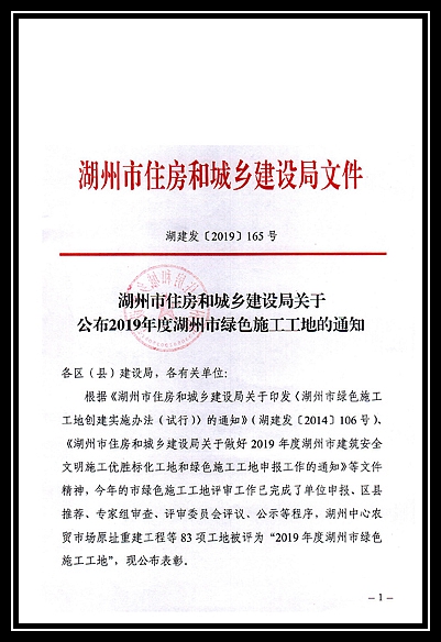 2019年度湖州市綠色施工工地