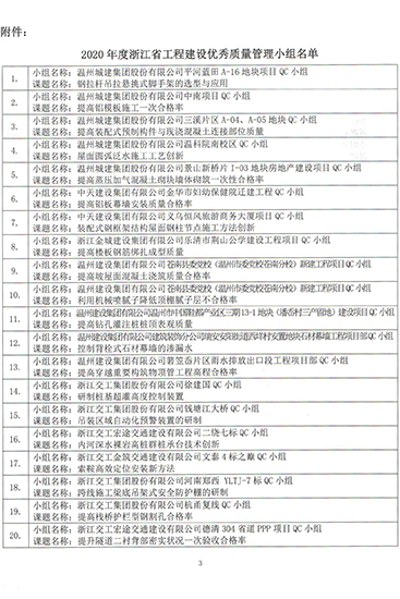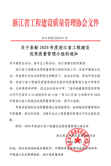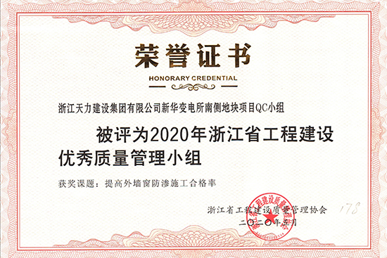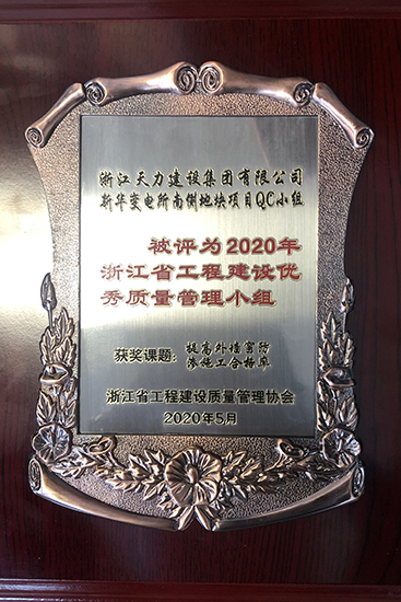 新華變電所南側地塊項目QC小組獲評2020年浙江省工程建設優秀質量管理小組