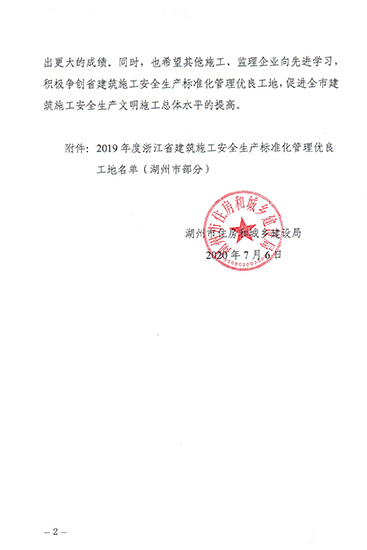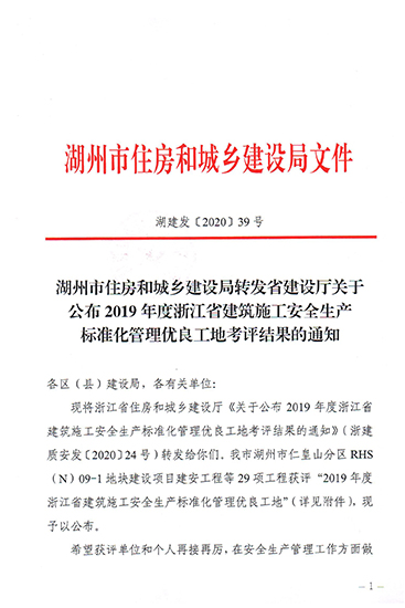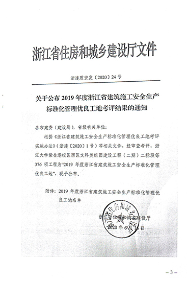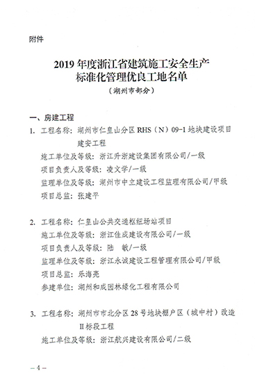 2019年度浙江省建筑施工安全生產(chǎn)標(biāo)準(zhǔn)化管理優(yōu)良工地(省標(biāo)化)