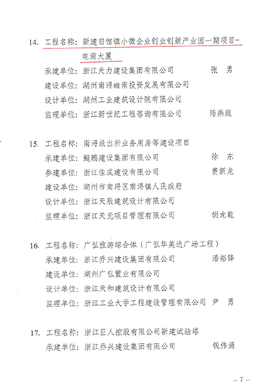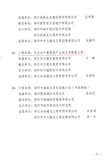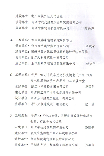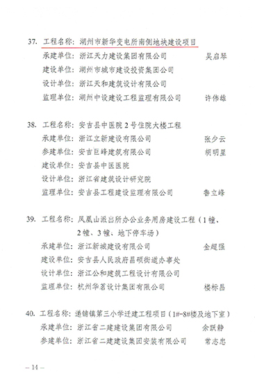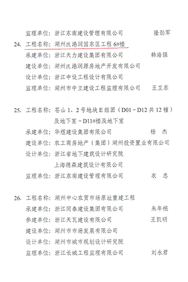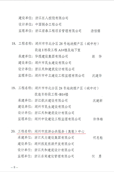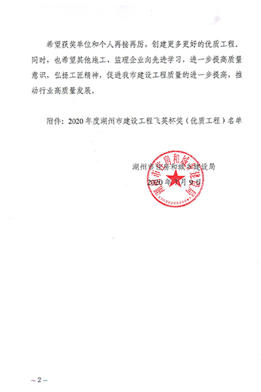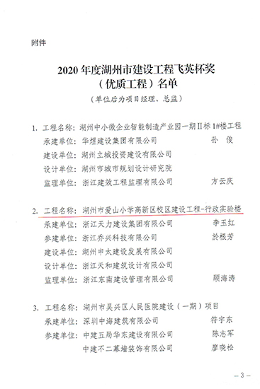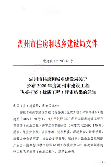 2020年度湖州市建設工程飛英杯獎(優(yōu)質(zhì)工程)