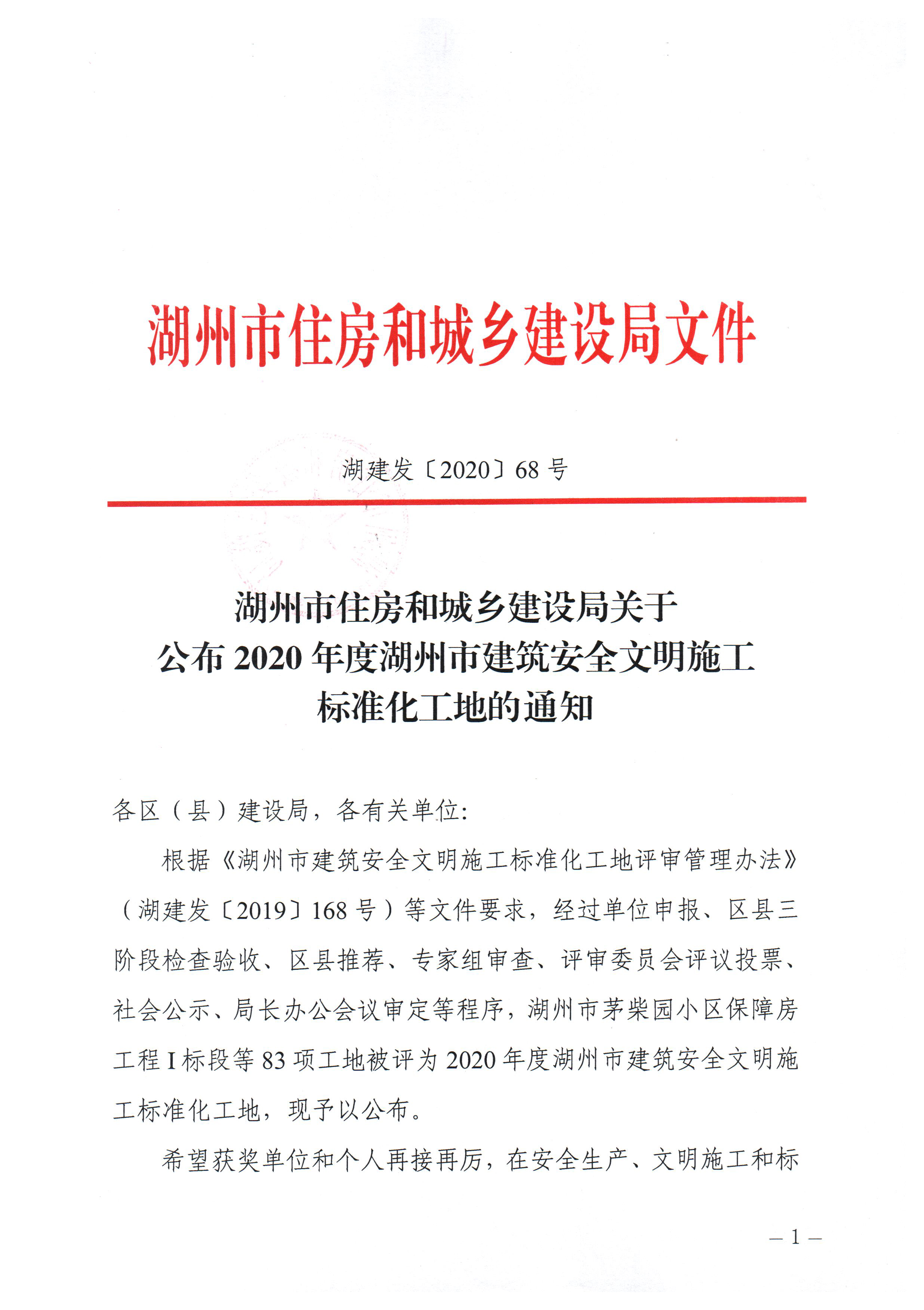 2020年度湖州市建筑安全文明施工標(biāo)準(zhǔn)化工地