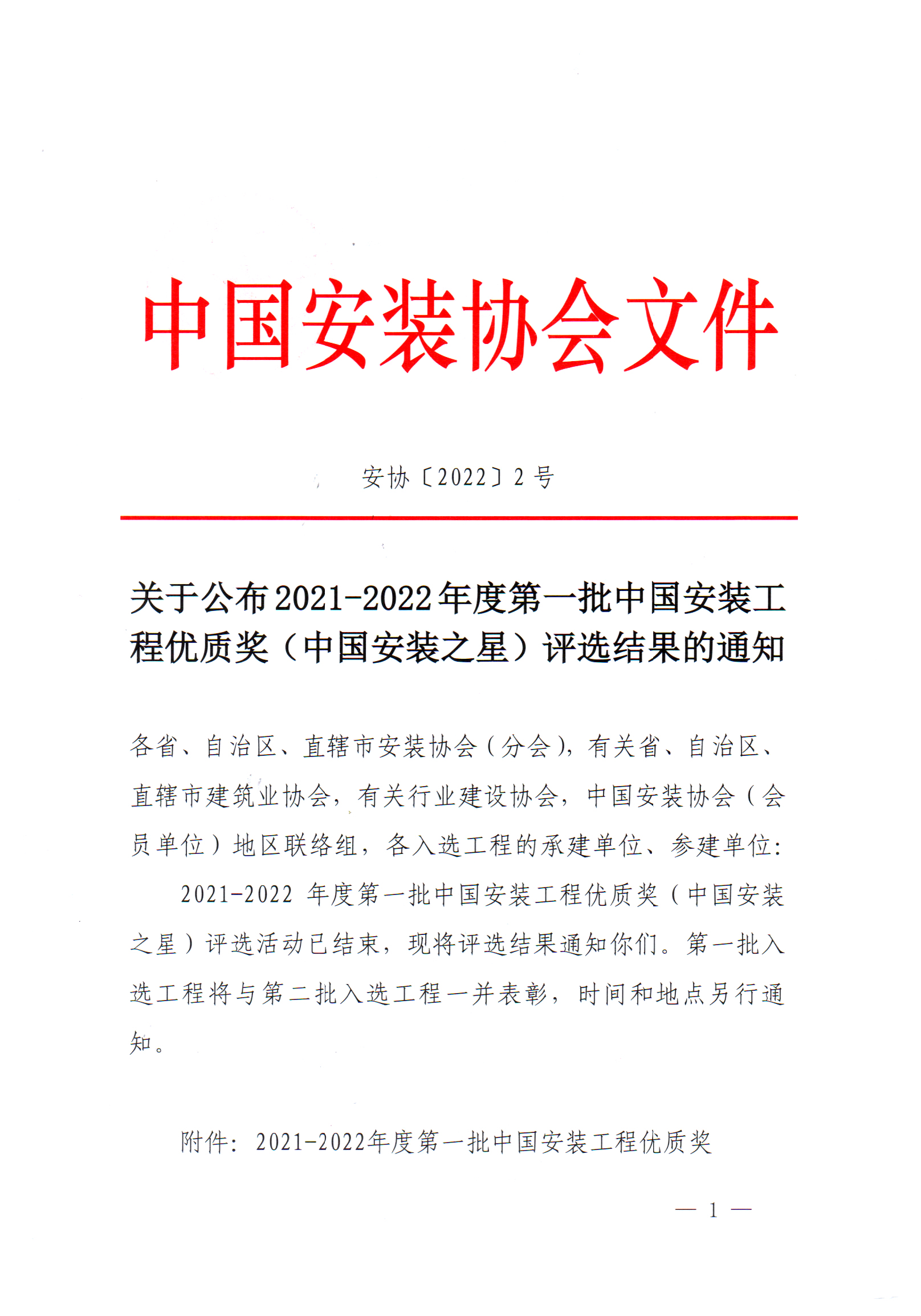 2021-2022年度第一批中國(guó)安裝工程優(yōu)質(zhì)獎(jiǎng)(中國(guó)安裝之星)