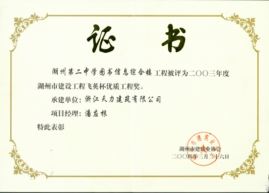 湖州第二中學圖書信息綜合樓2003年度湖州市飛英杯