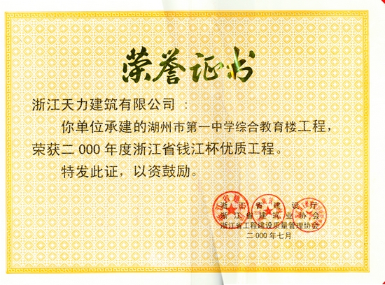 湖州市第一中學(xué)綜合教育樓工程2000年度浙江省錢江杯