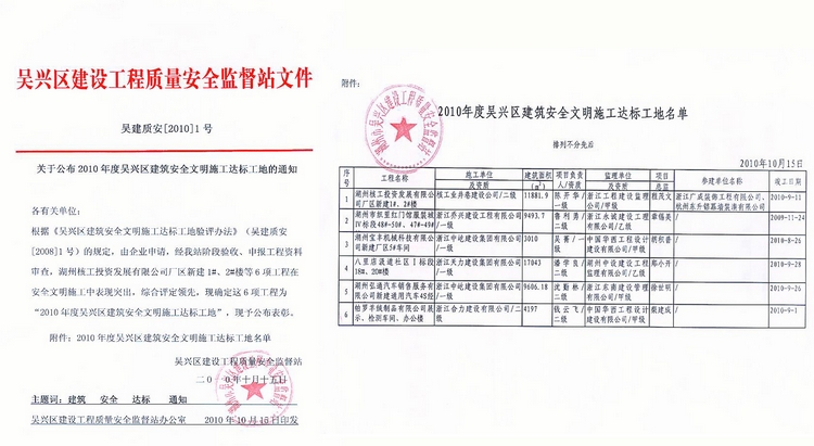 2010年吳興區(qū)建筑標(biāo)化安全工地
