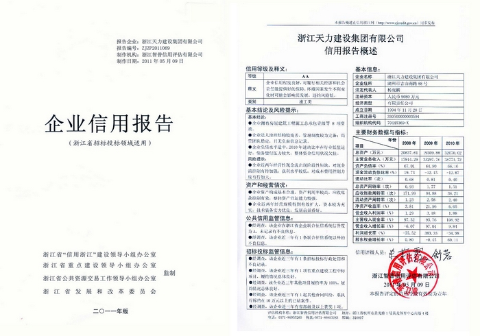 2011年度智普企業信用報告AA級