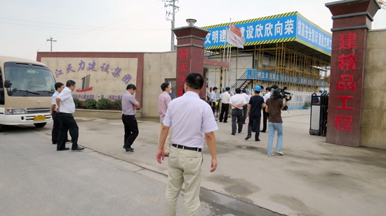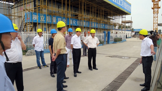 2014年9月29日上午,湖州市人大主任朱坤民、常務(wù)副市長楊建新、區(qū)委書記蔡旭昶、吳興區(qū)常務(wù)副區(qū)長周建新、區(qū)人大常委會主任吳旭等有關(guān)部門負責(zé)人和公司董事局主席楊虎麟、副總經(jīng)理印培榮的陪同下,視察了我公司承建的高新區(qū)現(xiàn)代物流創(chuàng)業(yè)中心,就抓好建筑工地揚塵管理、建筑垃圾清理,推進大氣霧霾治理進行專題調(diào)研。
