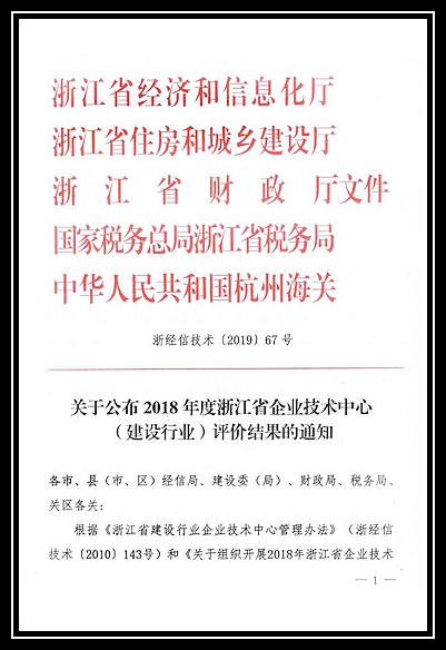 2018年3月8日,經(jīng)省經(jīng)信廳、省建設(shè)廳、省財(cái)政廳、浙江省稅務(wù)局和杭州海關(guān)等5部門審核,我公司順利通過(guò)升級(jí)企業(yè)技術(shù)中心的評(píng)價(jià),得分77.10,全省排名第19名,位列湖州地區(qū)第一名。