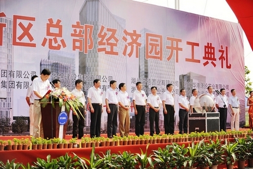 新開工的吳興區總部經濟大樓位于湖州市吳興區政府東側。湖州市領導吳水霖、施根寶、周建新和投資建設該項目的各公司領導及我公司領導楊虎麟、江文等出席了開工典禮。
